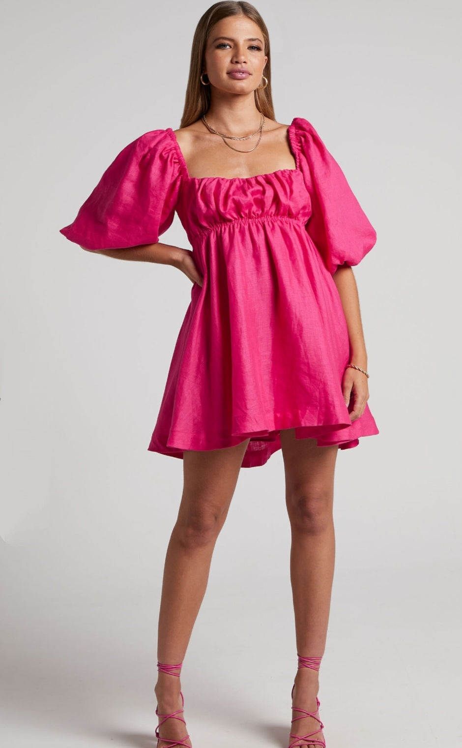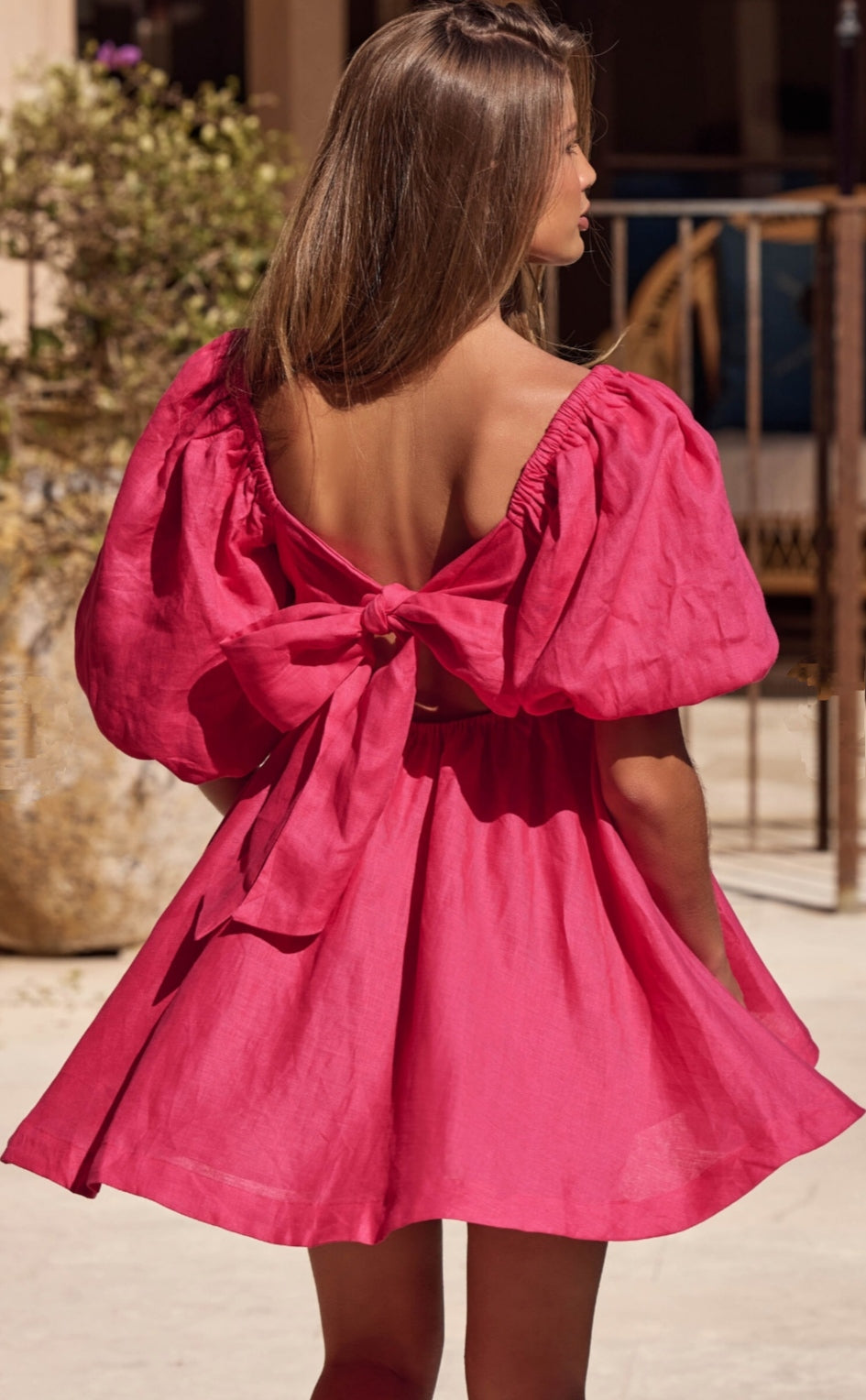 How gorgeous is our All That You Wish For Mini Dress!!This statement mini features so many feminine finishes from its babydoll silhouette to the exaggerated bubble sleeves to the big bow tied over an open back. Worn with pretty heels and bold earrings, it's total eye candy!