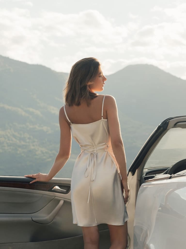 The belle slip dress is beige colour cowl neck mini slip dress with tie at back . Making it perfect date night dress. Pair it with your favourite heels and accessories and be the point of attraction.