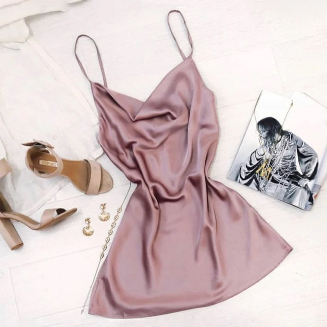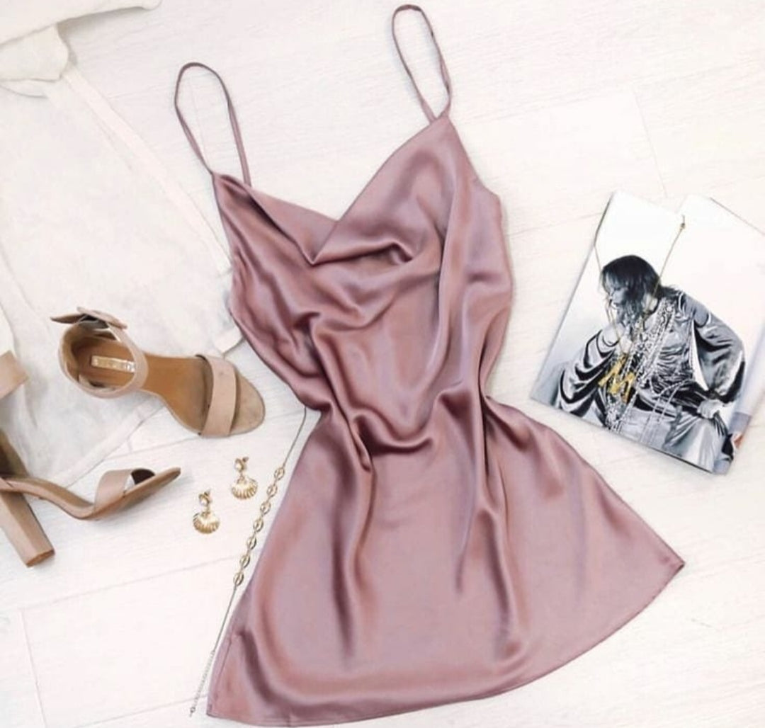 Look sleek on your next night out in our satin come to home Vegas serene dress. The dress comes in nude color which is trending these days, so get this amazing dress for your wardrobe.