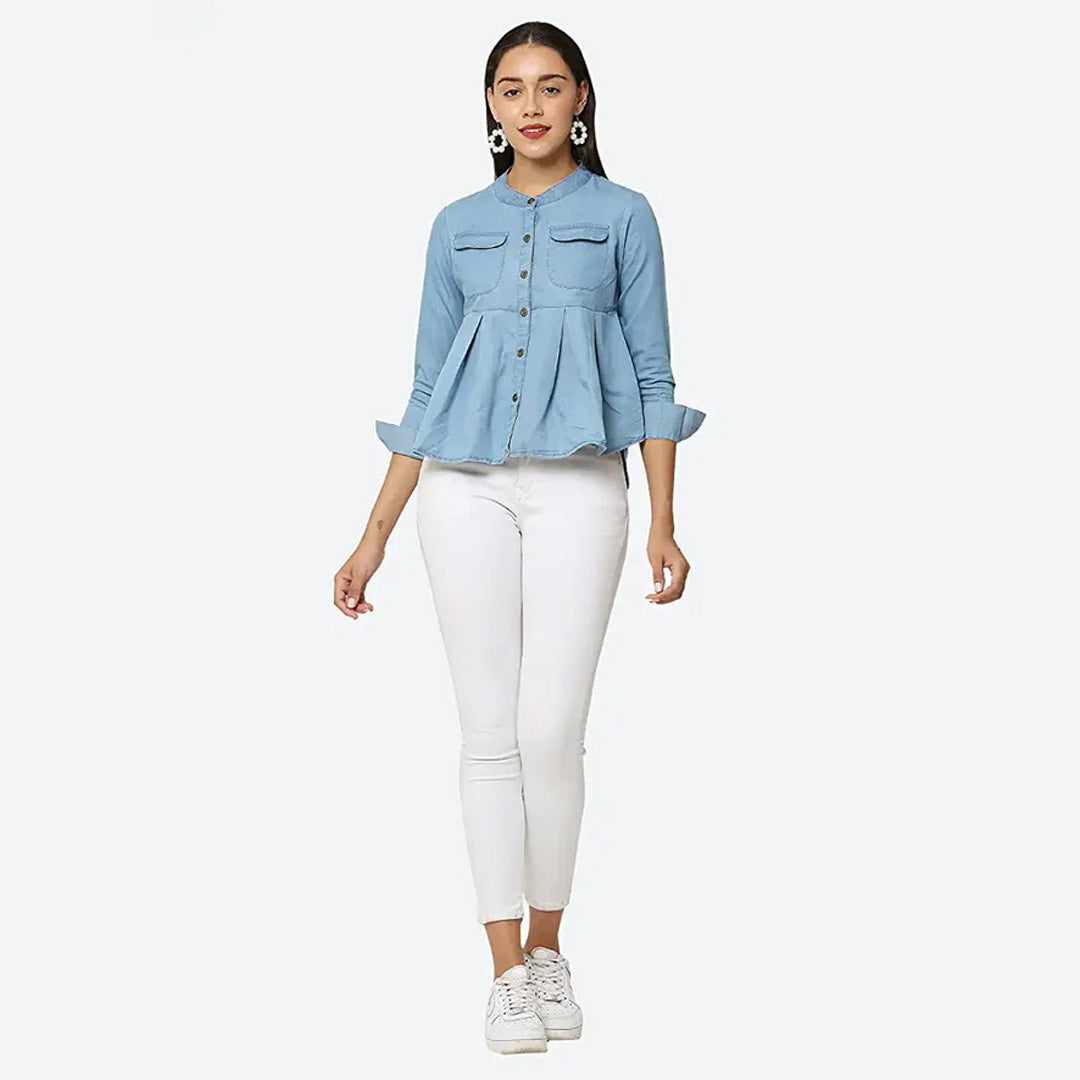 Easy going Girl Light Wash Button Up Shirt