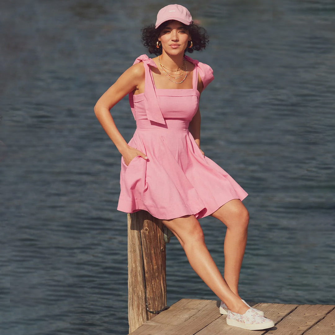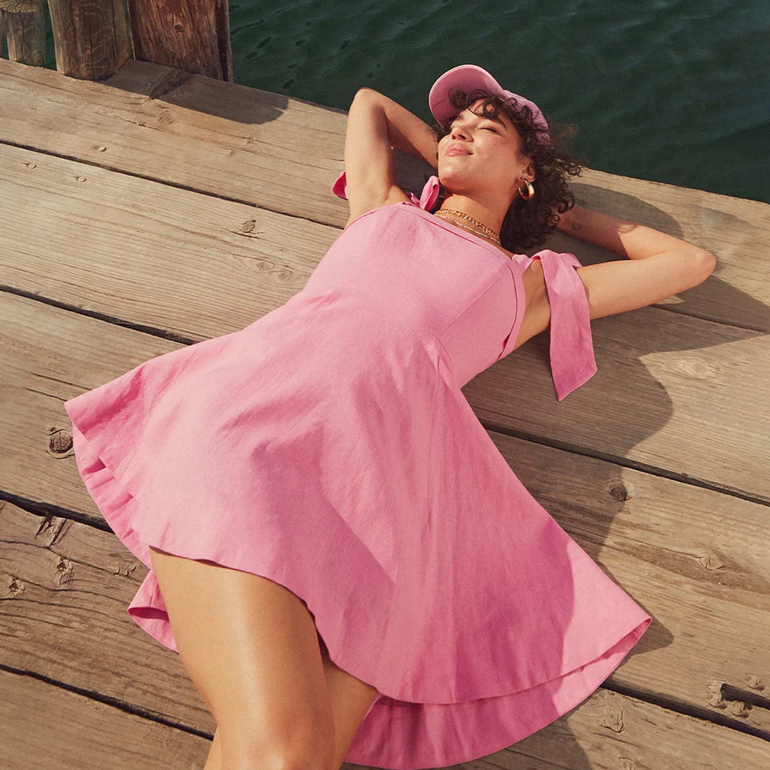 Flirtatious Looks Pink Tie-Strap A-Line Mini Dress With Pockets