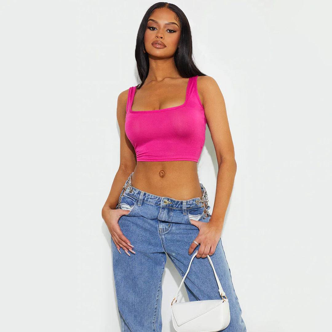Upgrade your off-duty wardrobe with this tank. Featuring a hot pink hue basic jersey material with a square neck design a cropped fit, what's not to love? Wear this with your go-to jeans, fresh kicks and gold hoops for the perfect everyday fit.