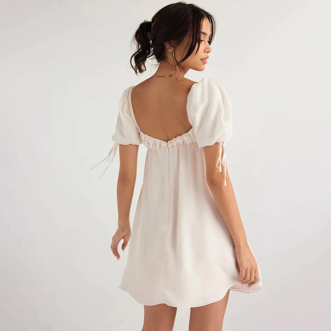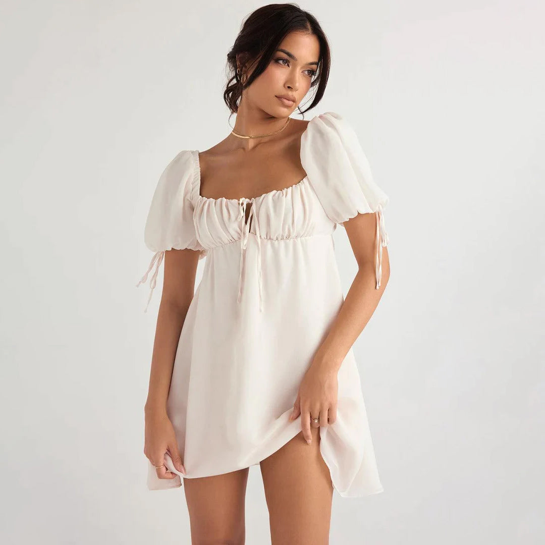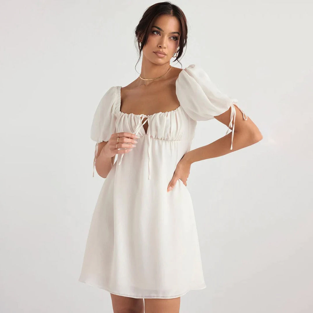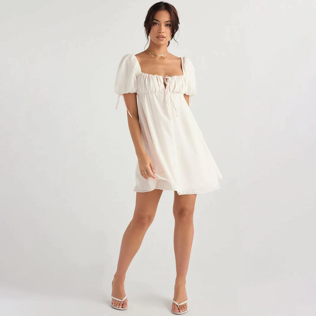 Introducing the Princess Ivory Georgette Mini Dress: A Timeless Elegance for Every Occasion White