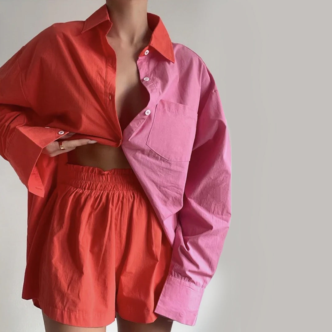 Kiss Me colorblock Oversized Button Up Shirt Set
