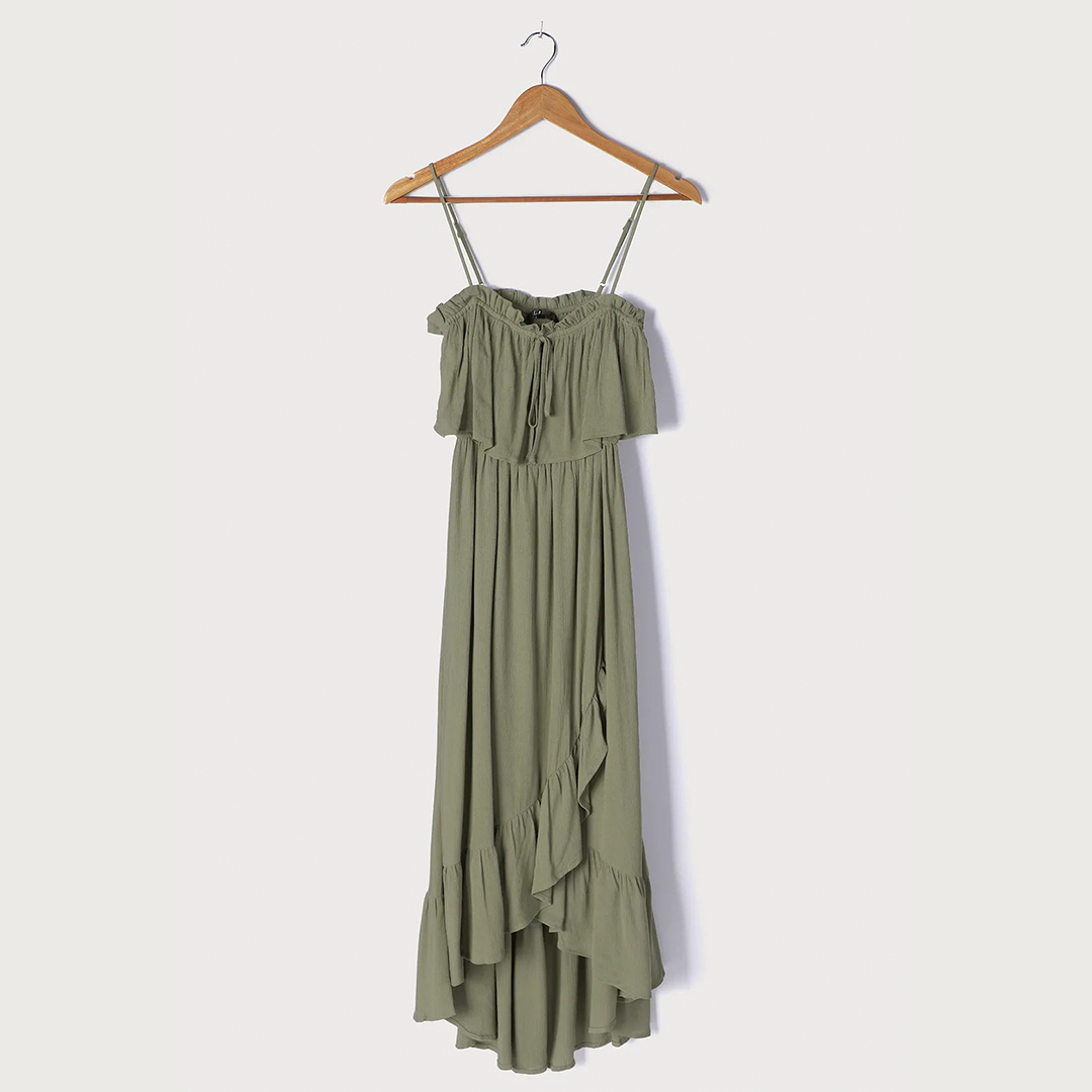 Lasting Summer Olive Green Ruffled Midi Dress