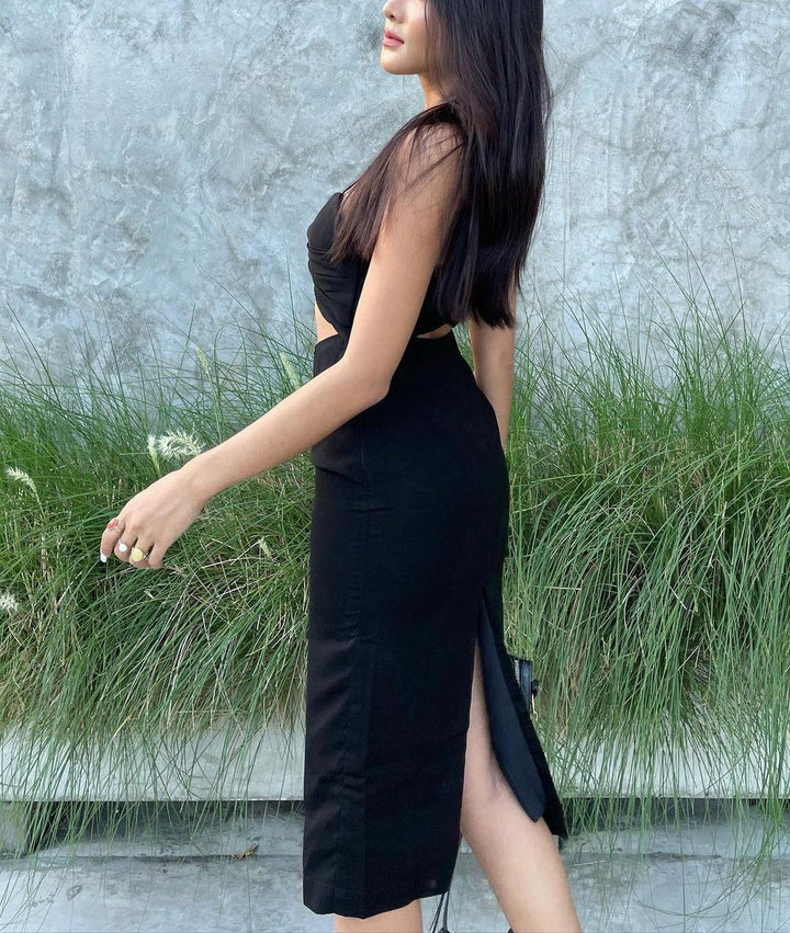 Define elegance in one simple step; our Bodycon Black Midi Dress with Back Slit flawlessly combines sophistication and comfort. This masterpiece is designed with a convenient back slit, ensuring every stride you take exudes confidence and ease. Dress in style, walk in comfort.