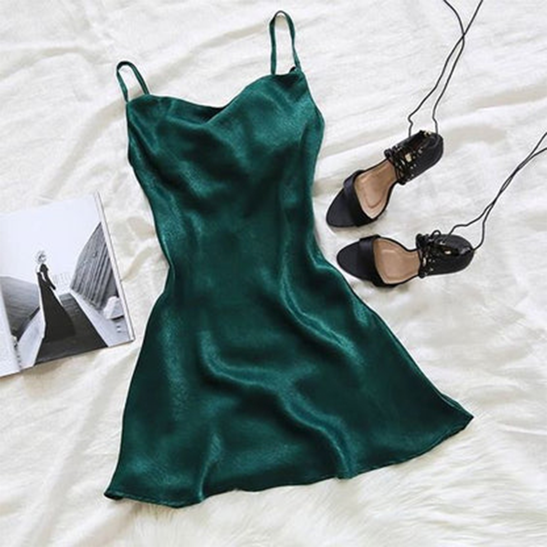 Our Taking Pictures Of You Dress gives us flashbacks of early 00's fashion and we love it! It has a cowl neckline, adjustable shoulder straps, is made from IRRESISTIBLE satiny fabric and it's a halter neck tie up style. Our fave way to wear it is with mules + a mini box clutch!