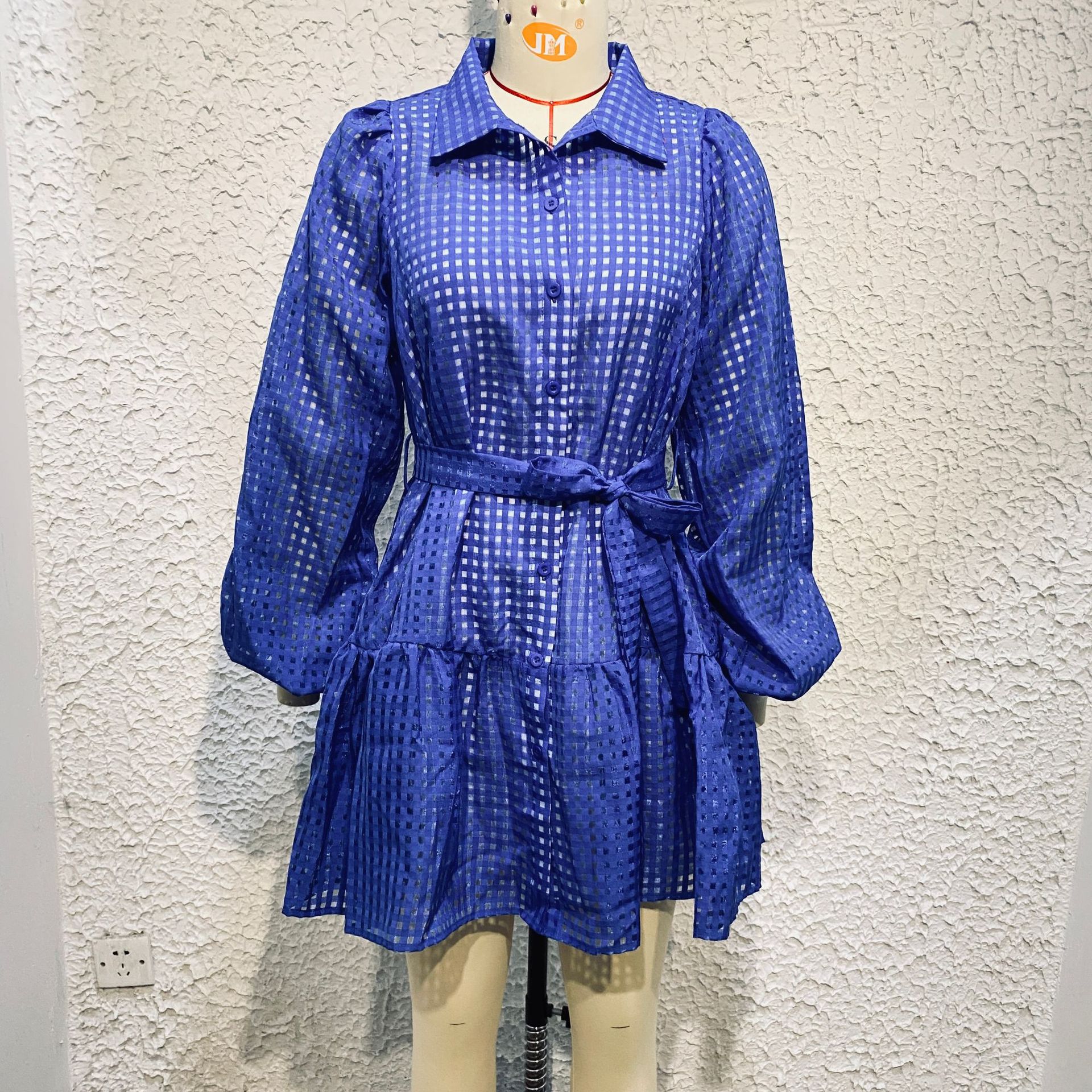 Women's Plaid V-neck Big Swing Long-sleeved Mini dresses